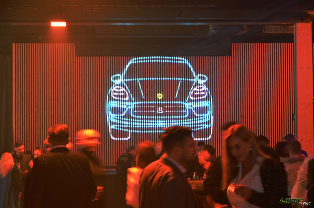 Tu tworzymy dla Państwa sekwencję animowanych grafik, tekstów, logotypów, itp. operując kolorową ‘kreską’ promienia lasera. Tłem pokazu może być płaszczyzna ściany, sufit, dach, elewacja, ściana lasu, kurtyna wodna i inne. Do pokazu graficznego nie używamy dymu, nie musi być też kompletnie ciemno.